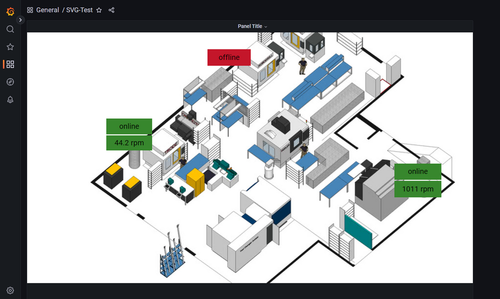 - Language Configuration: The language of the machine states can be configured using the languageCode configuration option (or overwritten in Grafana).