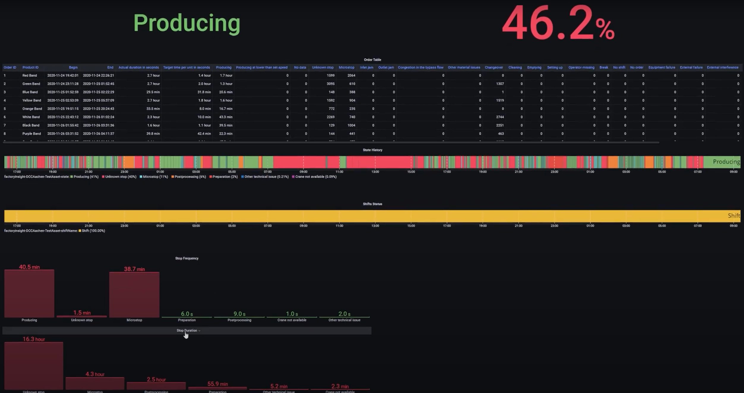 - See machine states, shifts, and orders on timelines to get a clear view of what happened during a specific time range.